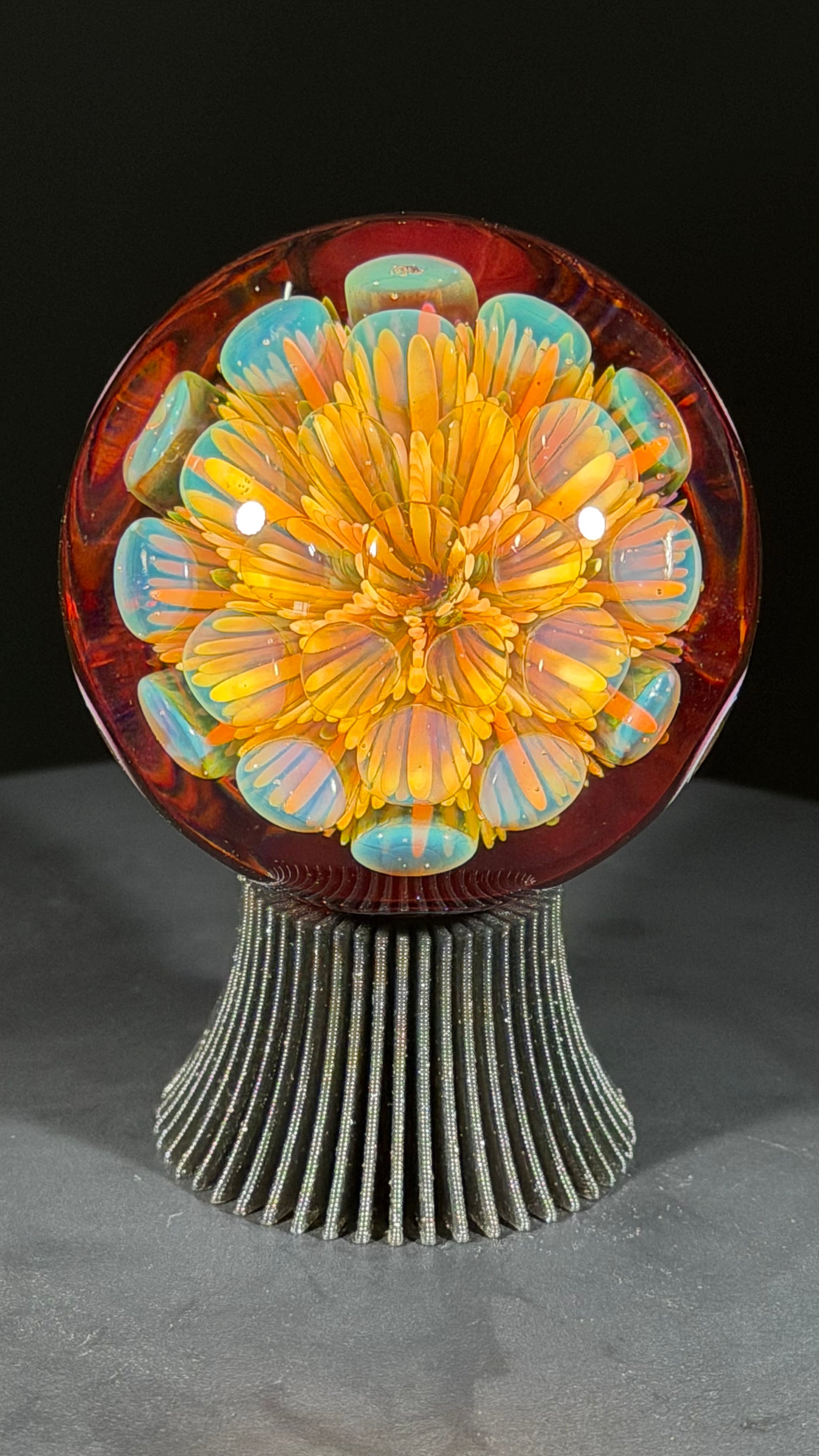 Gold and silver fuming, telemagenta, lite brite pink UV & neptune implosion backed with gold amethys and shimmering electrum, lotus white, & neptune dot stacks. 47mm